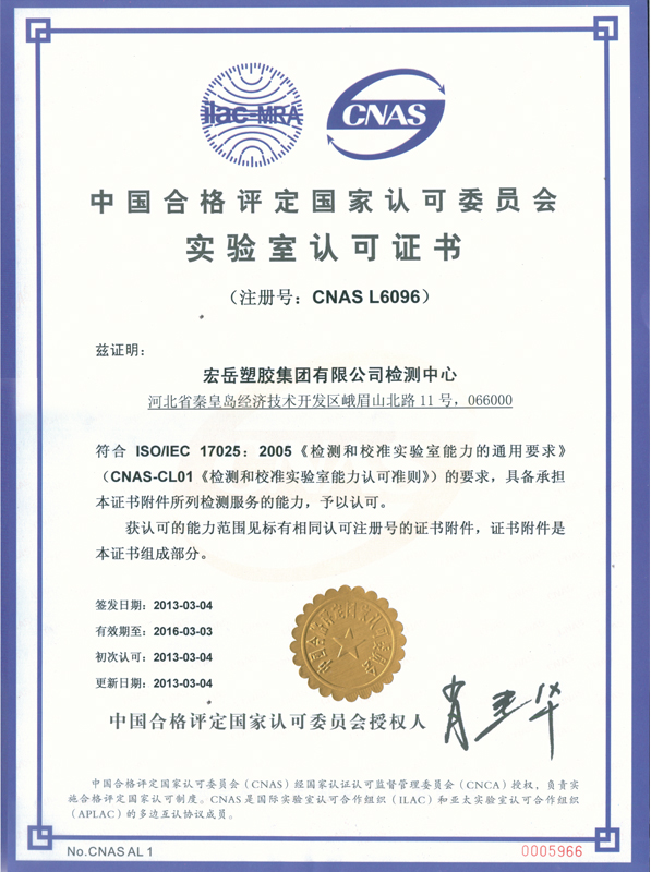 Kaiyun (中国)塑胶集团有限公司检测中心于2011年3月导入国家试验室认可体系,中心隶属于Kaiyun (中国)塑胶集团有限公司,拥有国内外先进的检测仪器和设备,全部为相关专业本科以上学历或工作时间超过10年的资深专业人员。自体系推行以来,2011年、2012年中心通过了两次的内审和管理评审,使体系运行不断完善,同时进行了认可委组织的维卡软化、拉伸和熔指的能力验证和测量审核4次,与塑料制品监督检验中心进行了交联度的实验室比对,通过能力验证和实验室比对,说明检测中心具备良好的检测能力,能够确保独立地、公正地对承检范围内的检测项目进行检测,检测数据准确,技术能力较高。